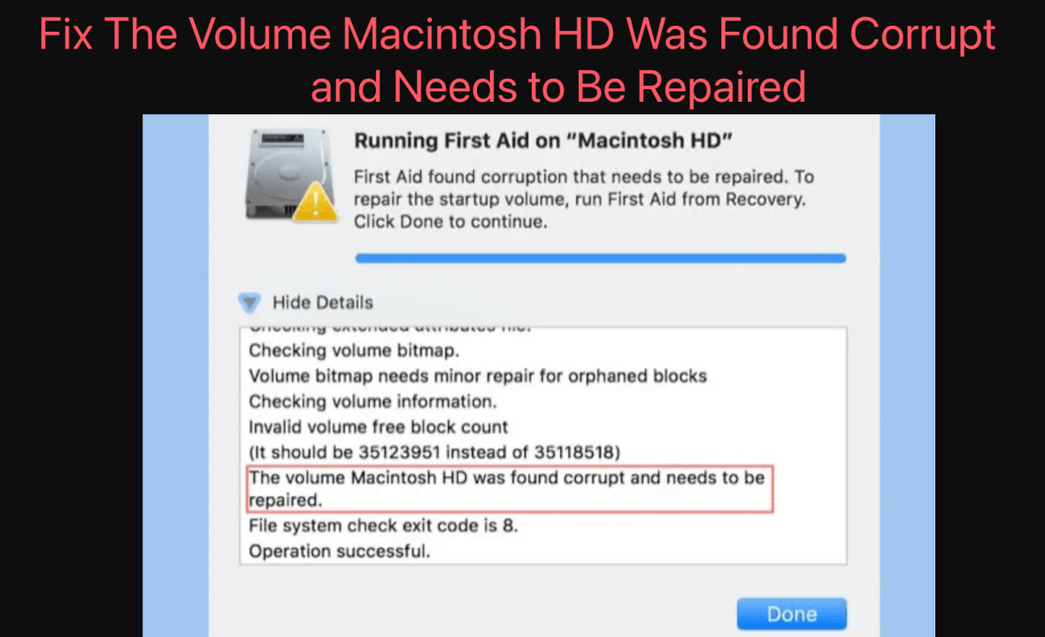 ![Fix The Volume Macintosh HD Was Found Corrupt and Needs to Be Repaired]()