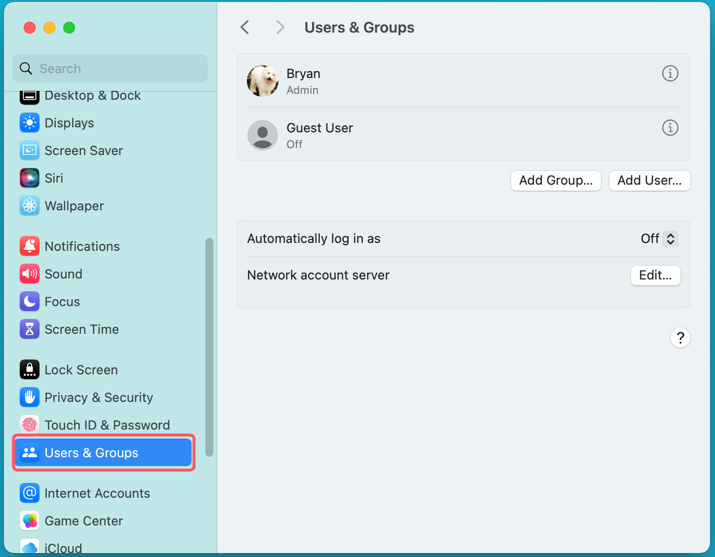 - Go to Users & Groups: Choose Users & Groups from the options.